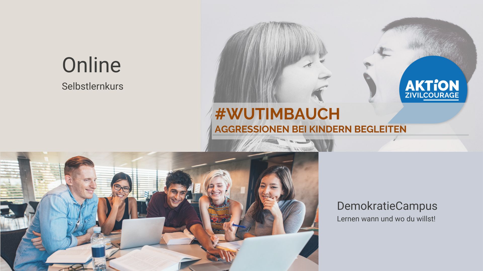 Kinder können eine Fülle von Emotionen erleben, und Wut ist zweifellos eine der intensivsten. Für pädagogische Fachkräfte in Kitas, Horten und Grundschulen ist es entscheidend, die Dynamik von Wut und Aggression zu verstehen und adäquat darauf reagieren zu können. Das Online-Seminar #WutImBauch, das über die Lernplattform "DemokratieCampus" des Aktion Zivilcourage e.V. angeboten wird, ist darauf ausgerichtet, Pädagog:innen mit dem nötigen Wissen und Werkzeugen auszustatten, um Wut und Aggression bei Kindern achtsam zu begleiten.