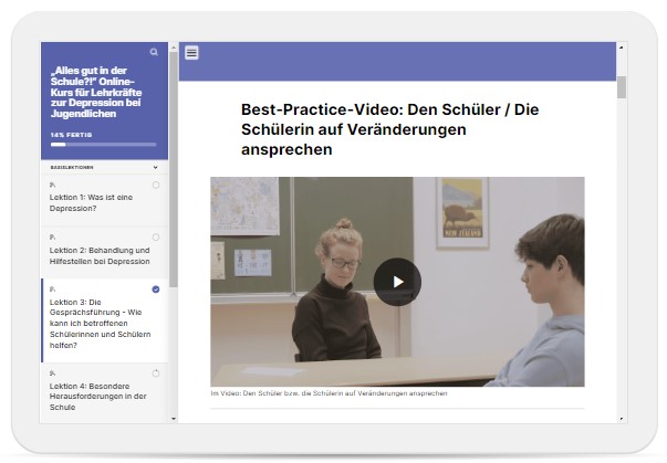 Die Online-Fortbildung für Lehrkräfte und Schulsozialarbeitende der Stiftung Deutsche Depressionshilfe und Suizidprävention vermittelt grundlegendes Wissen über Depression sowie einen sicheren Umgang mit möglicherweise an Depression erkrankten Jugendlichen und Suizidalität.